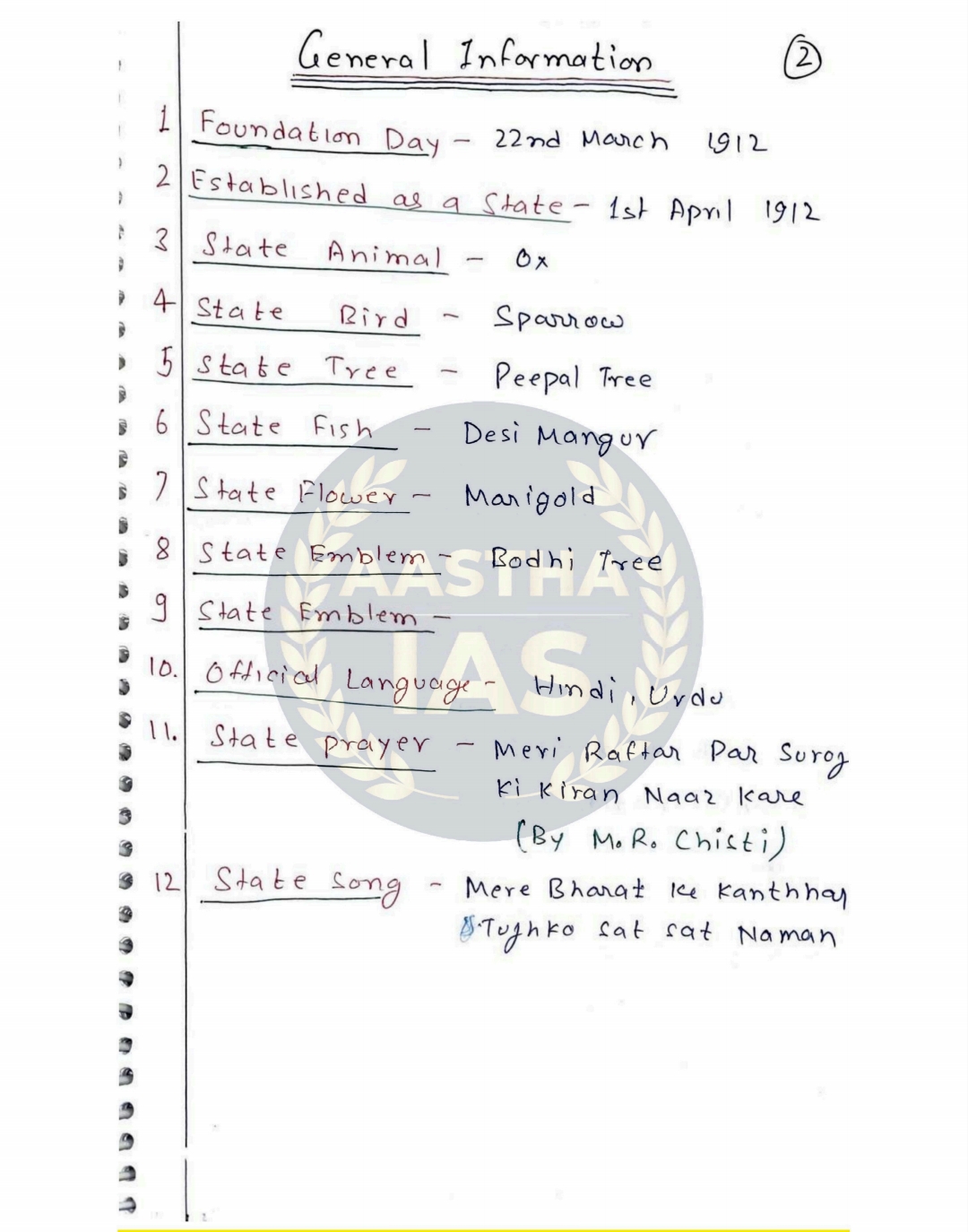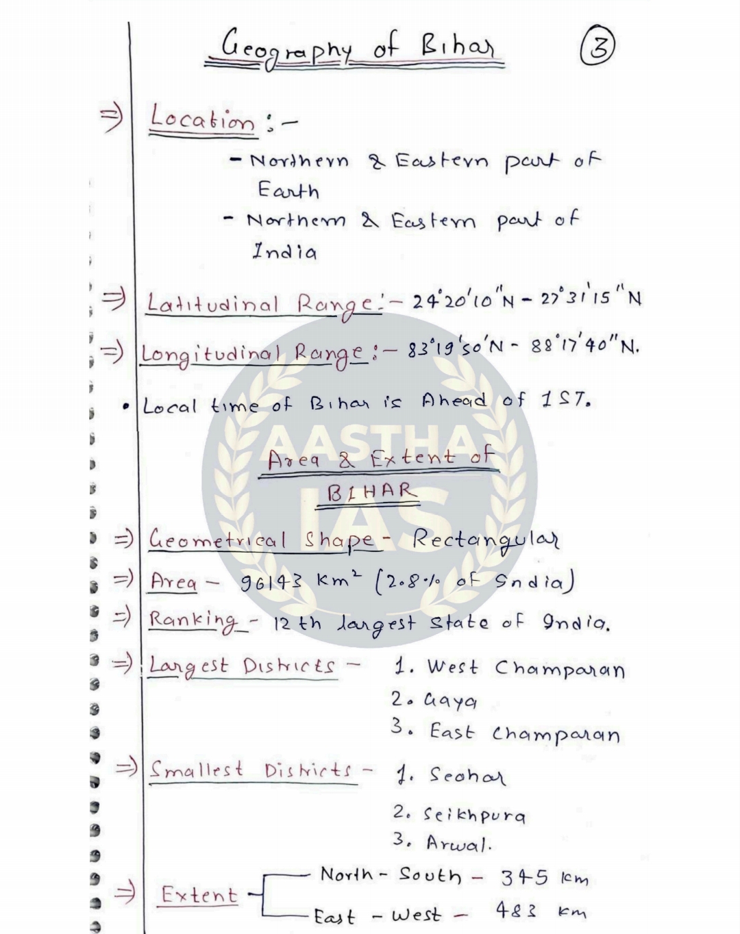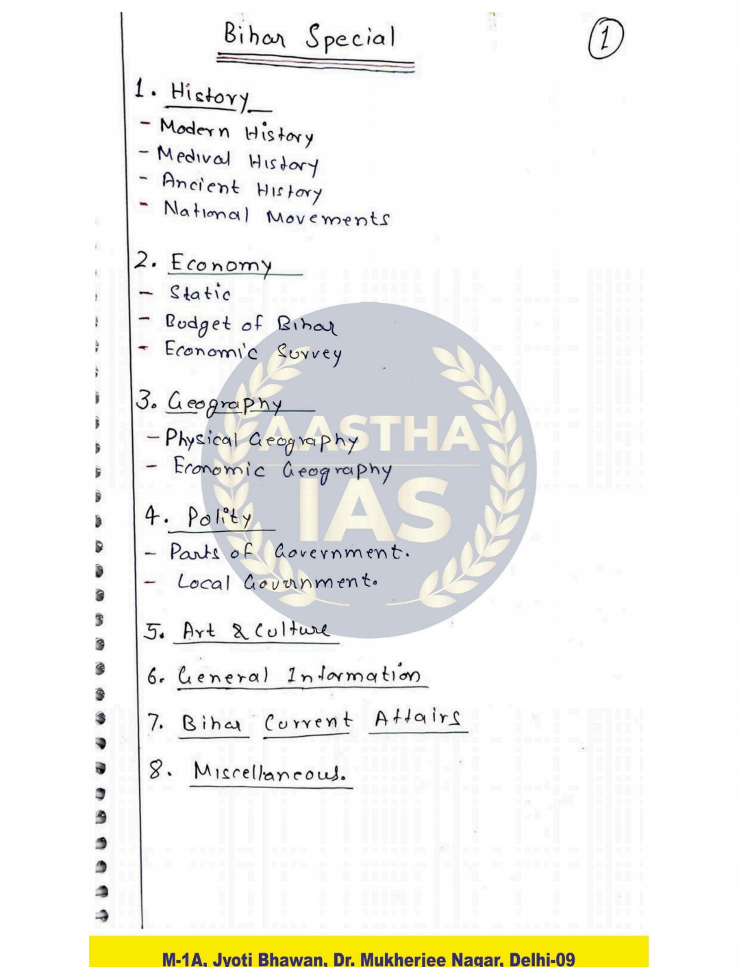 Aastha IAS BPSC (Bihar Special) Prelims Handwritten Notes