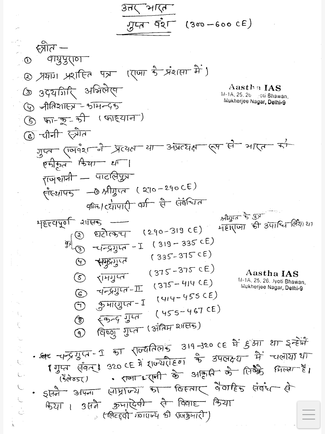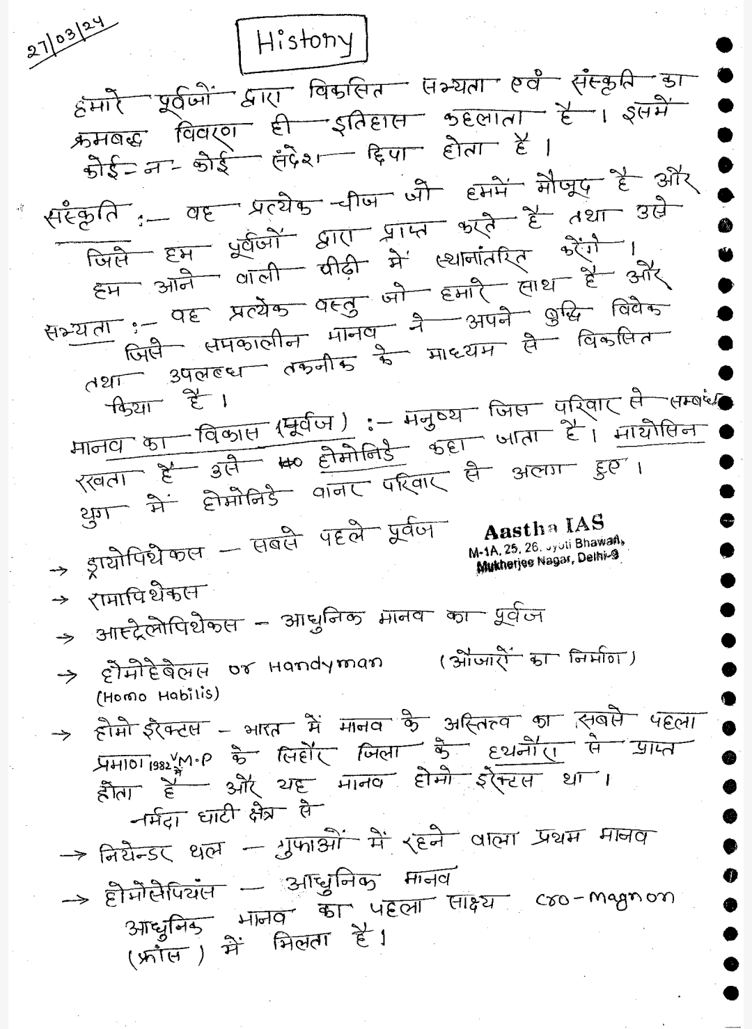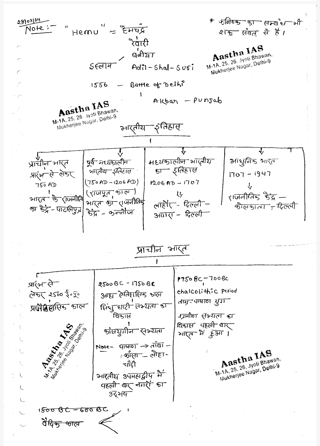 Aastha IAS BPSC (History)Hindi Prelims Handwritten Notes