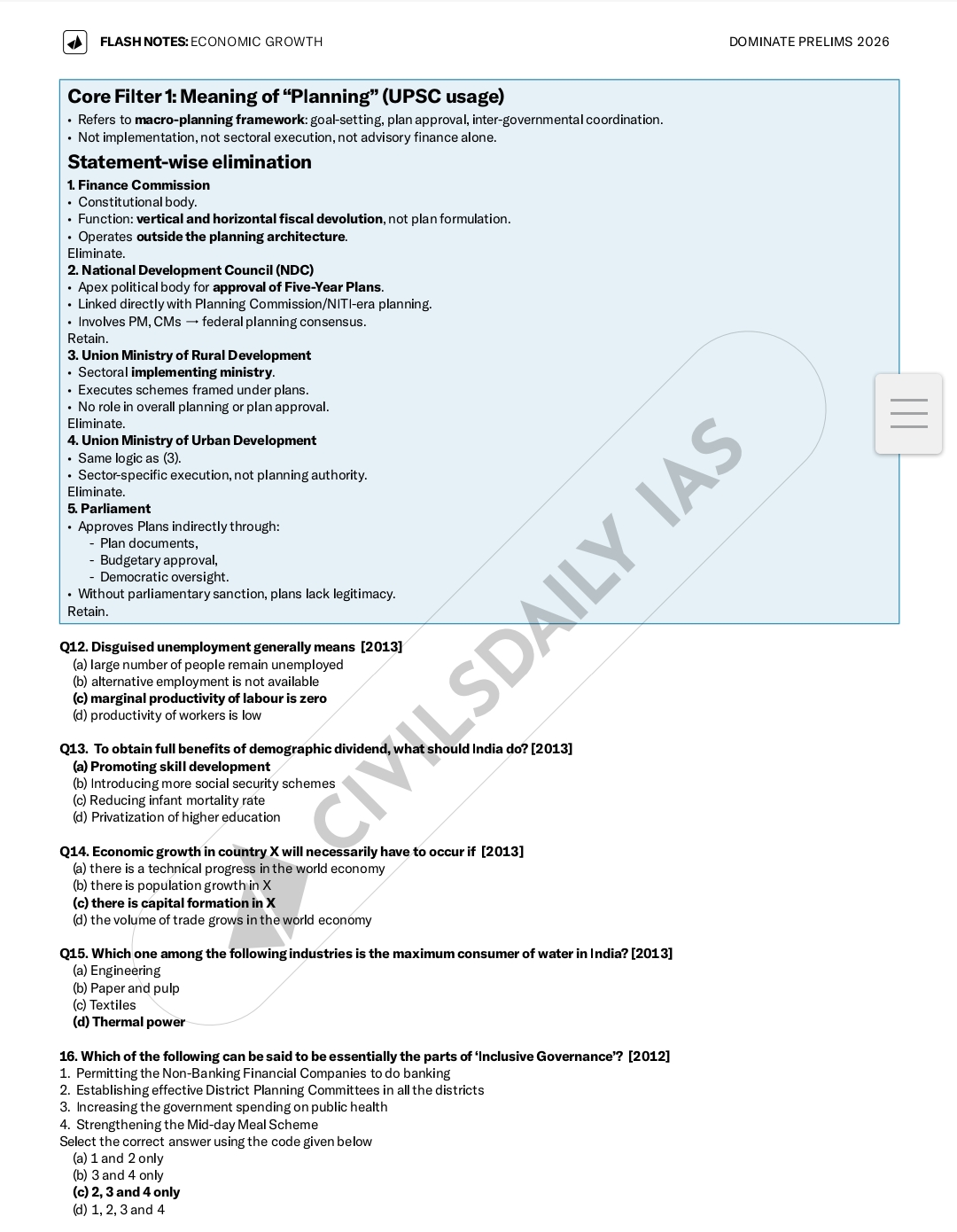 Civilsdaily IAS FLASH Notes(Economic Growth) Prelims- 2026