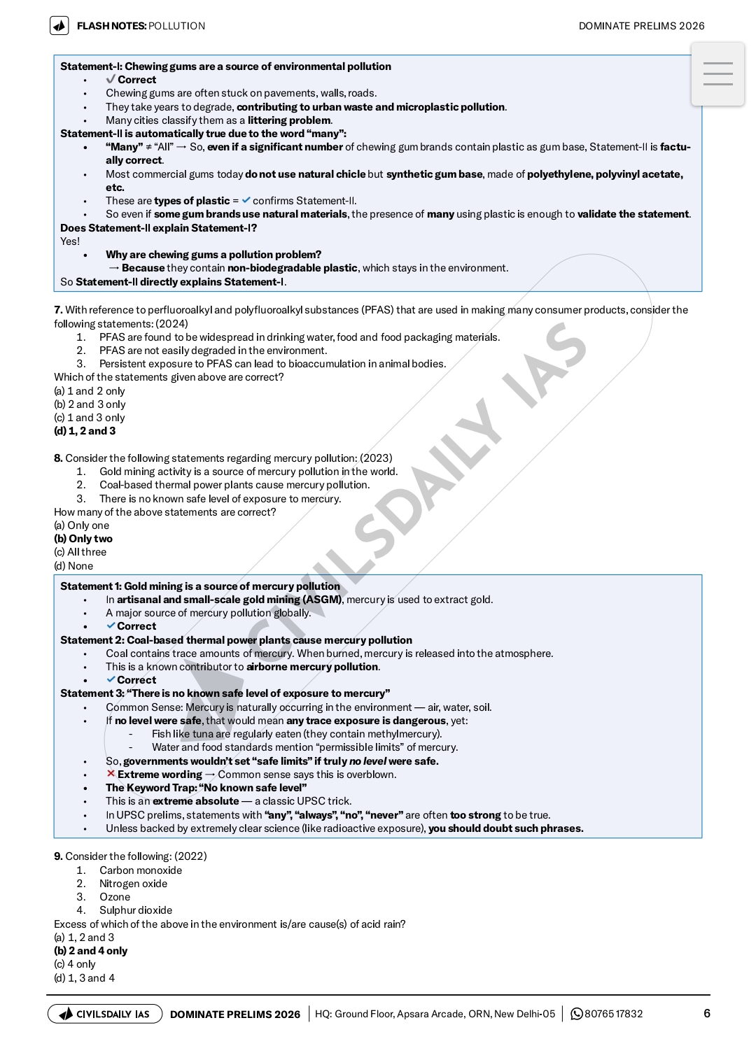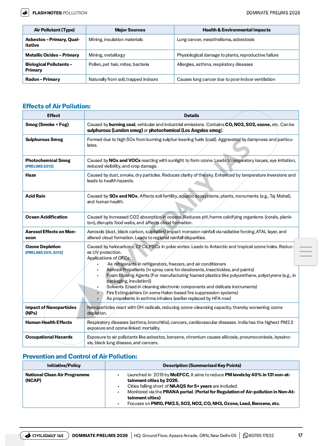 Civilsdaily IAS FLASH Notes(Pollution) Prelims- 2026