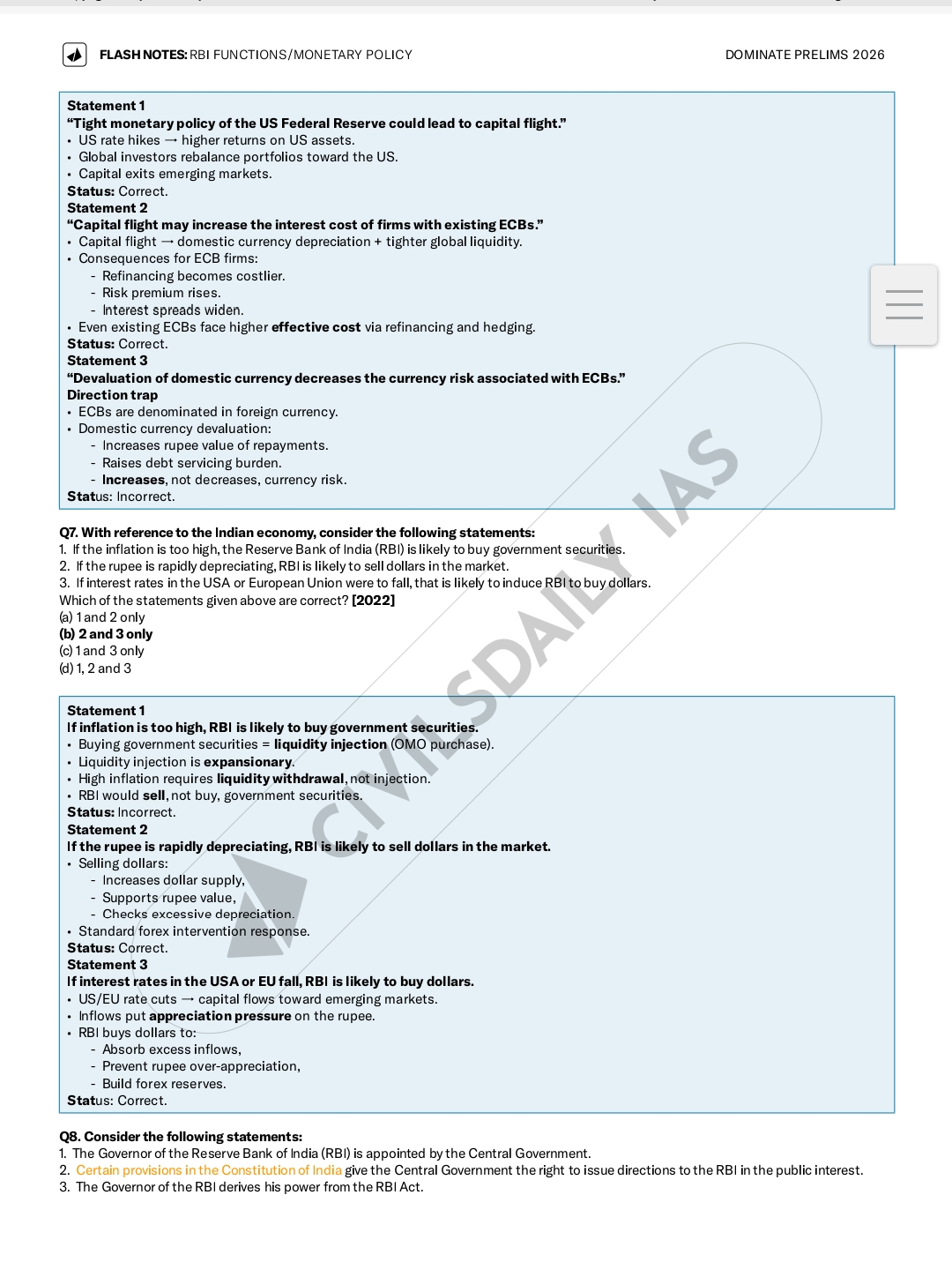 Civilsdaily IAS FLASH Notes(RBI Functions/Monetary Policy) Prelims- 2026