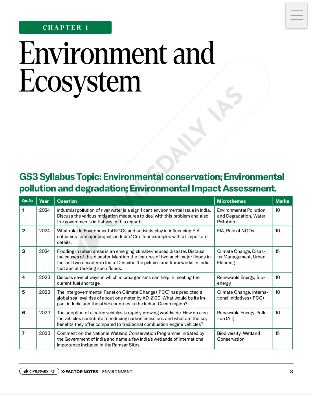 Civilsdaily IAS SMASH X- FACTOR Notes(Environment) Mains- 2025