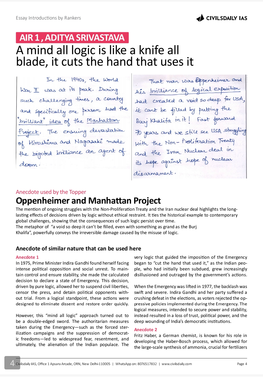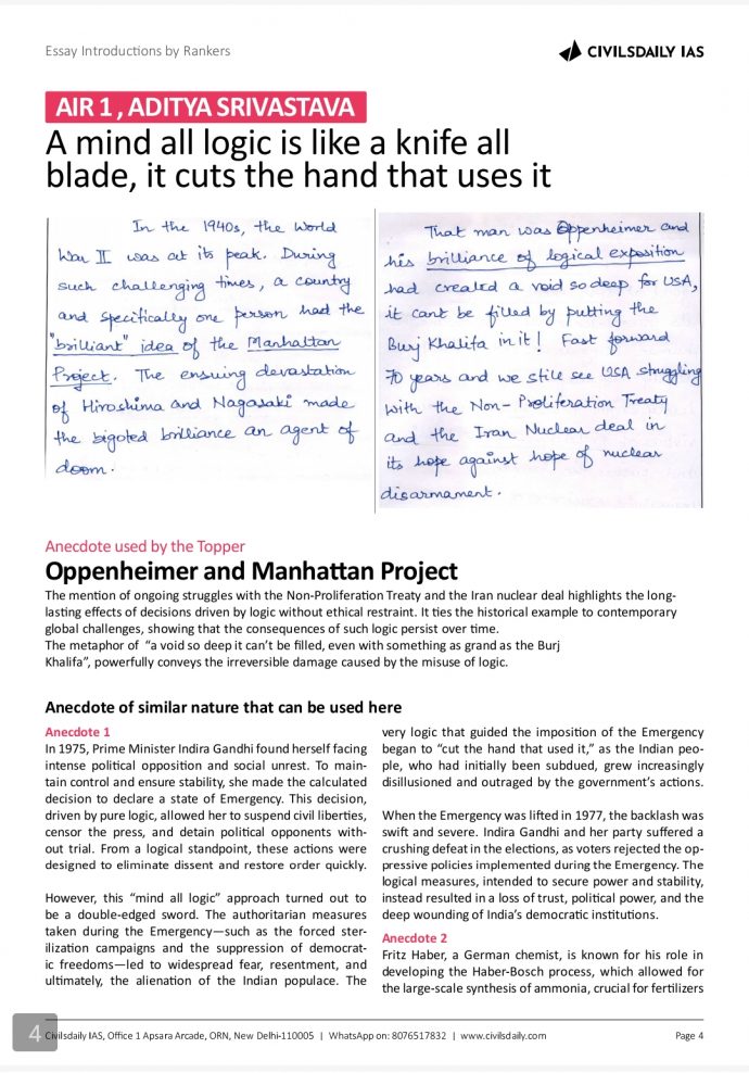 Civilsdaily IAS SMASH X- FACTOR Notes(Essay Introductions by Rankers) Mains- 2025