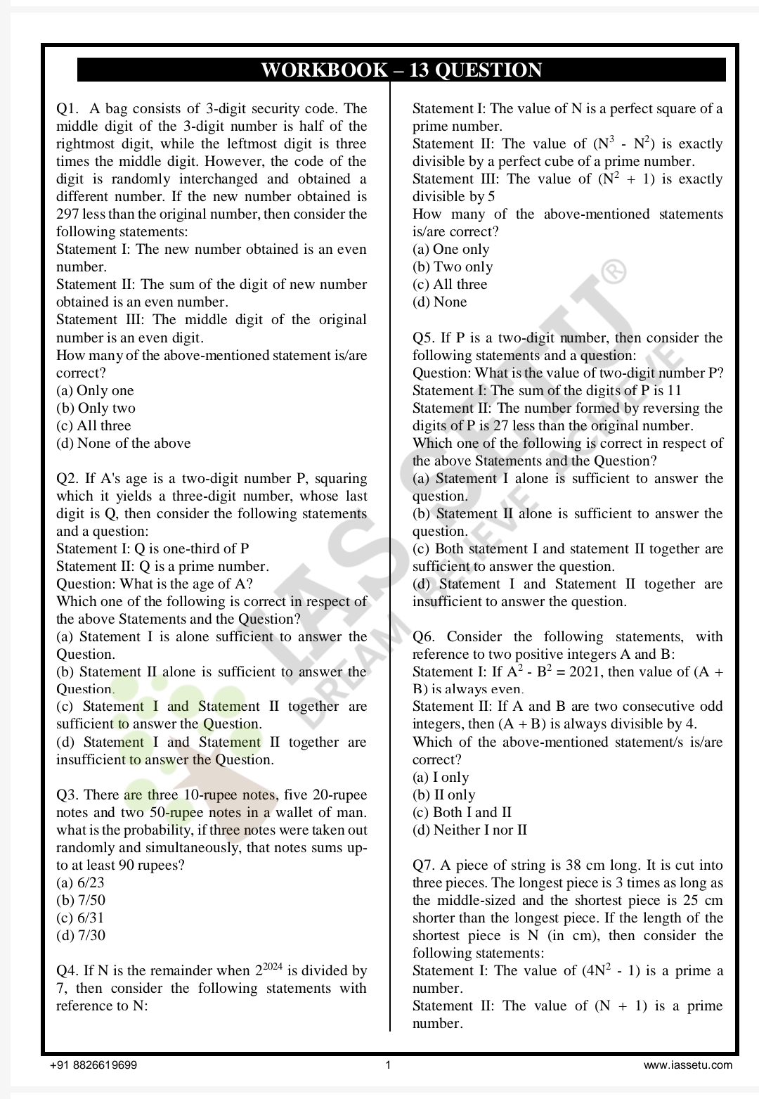 IAS SETU CSAT Workbook(1-30) Prelims- 2026