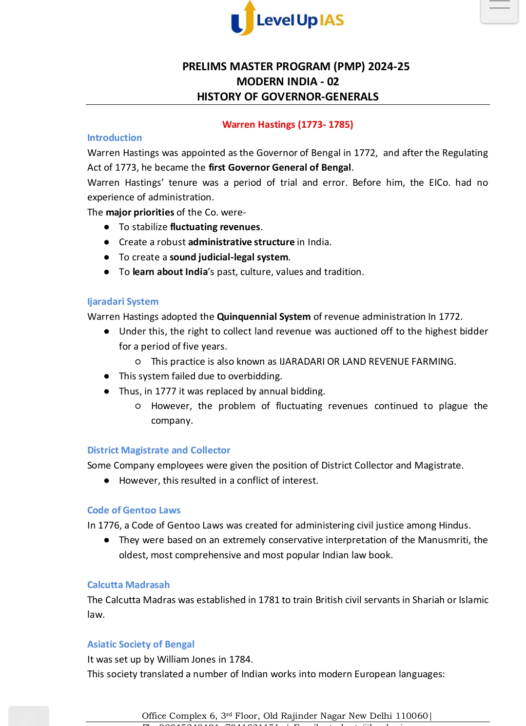 Level Up IAS Prelims Master Program(PMP) Modern India – 2024-25