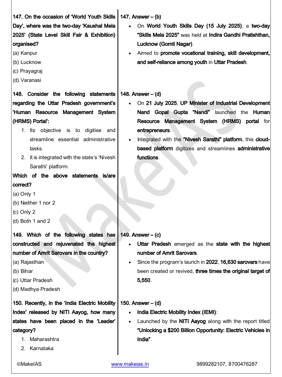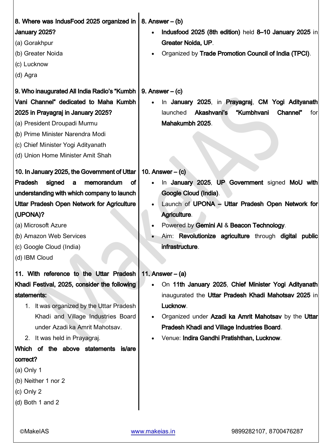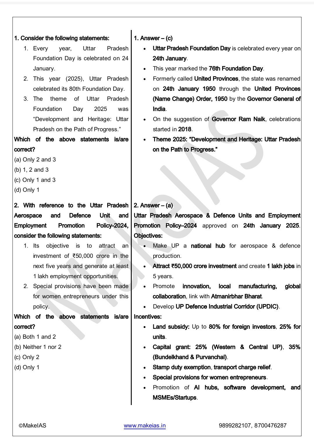 Make IAS UPPCS(UttarPradesh) MCQs with Explanation Prelims-(January- August)- 2025