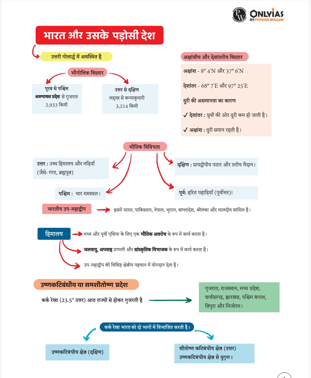 Physics Wallah & Only Ias MindMaps Hindi(Indian Geography)