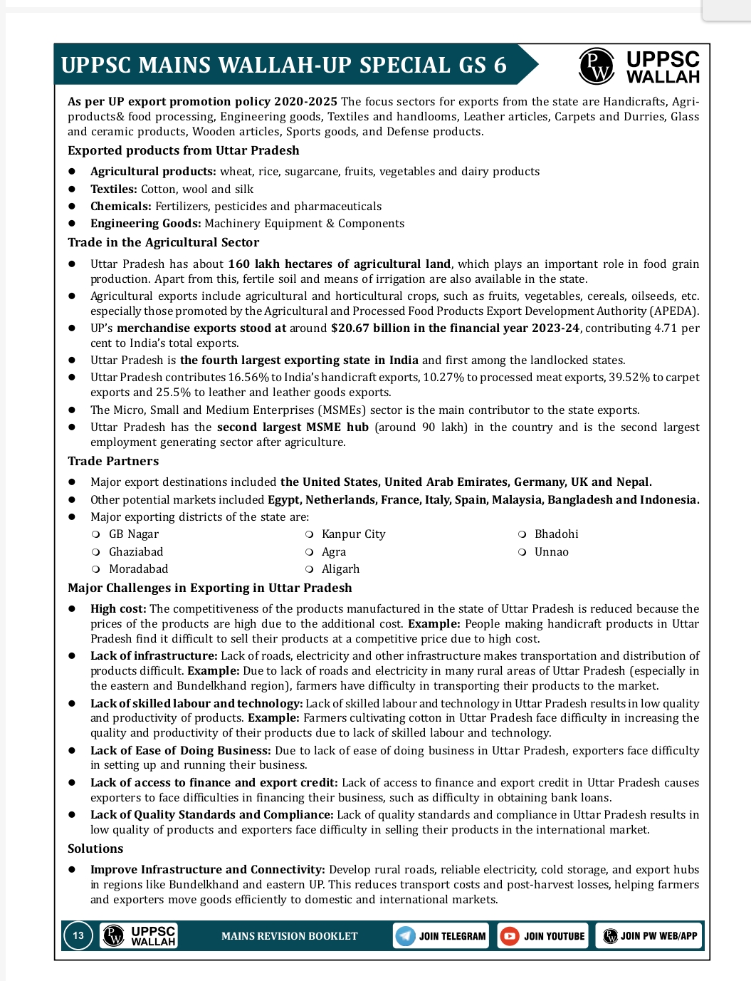 Physics Wallah & Only Ias (UPPSC) Mains Wallah Revision Booklet GS Paper-6(UP Special)-2024