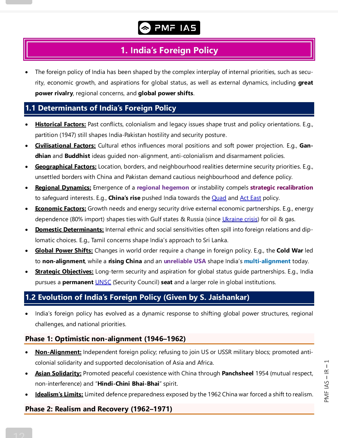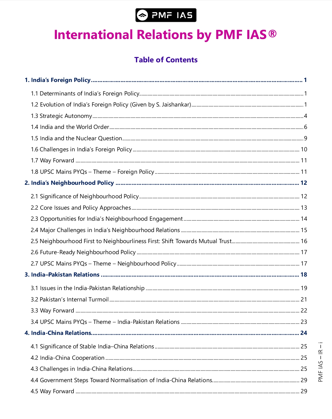 PMF IAS GS Foundation (International Relations) Notes