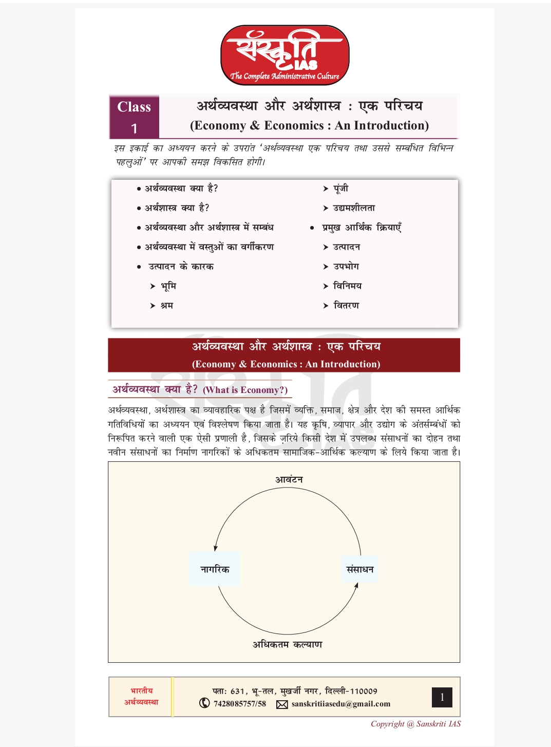 Sanskriti IAS Economics(Hindi) Study Material by AK Arun