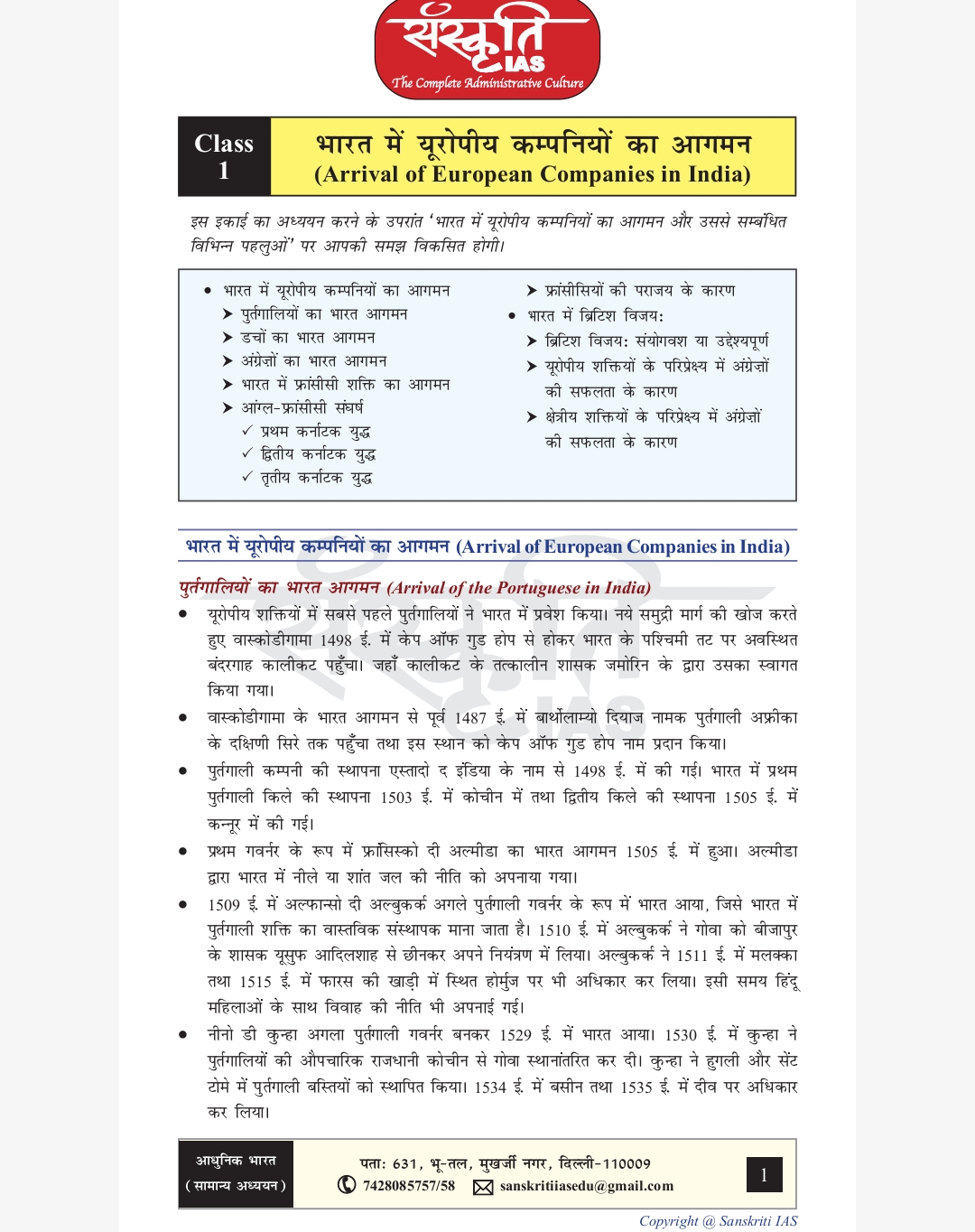 Sanskriti IAS Modern India(Hindi) Study Material by Akhil Murti