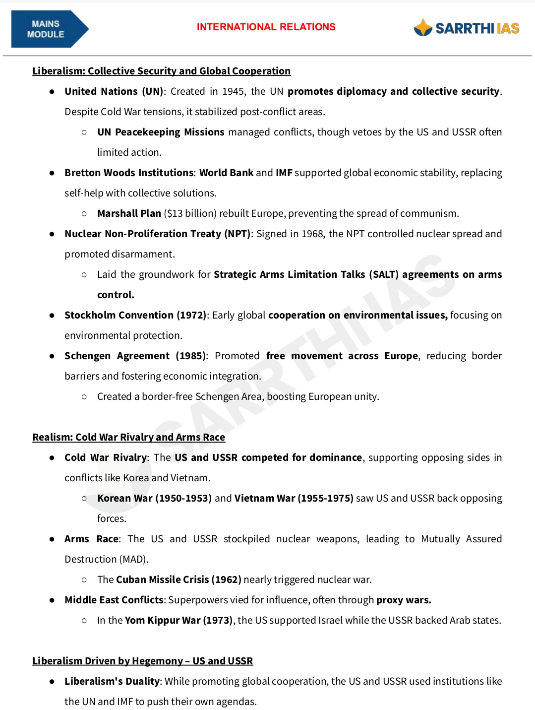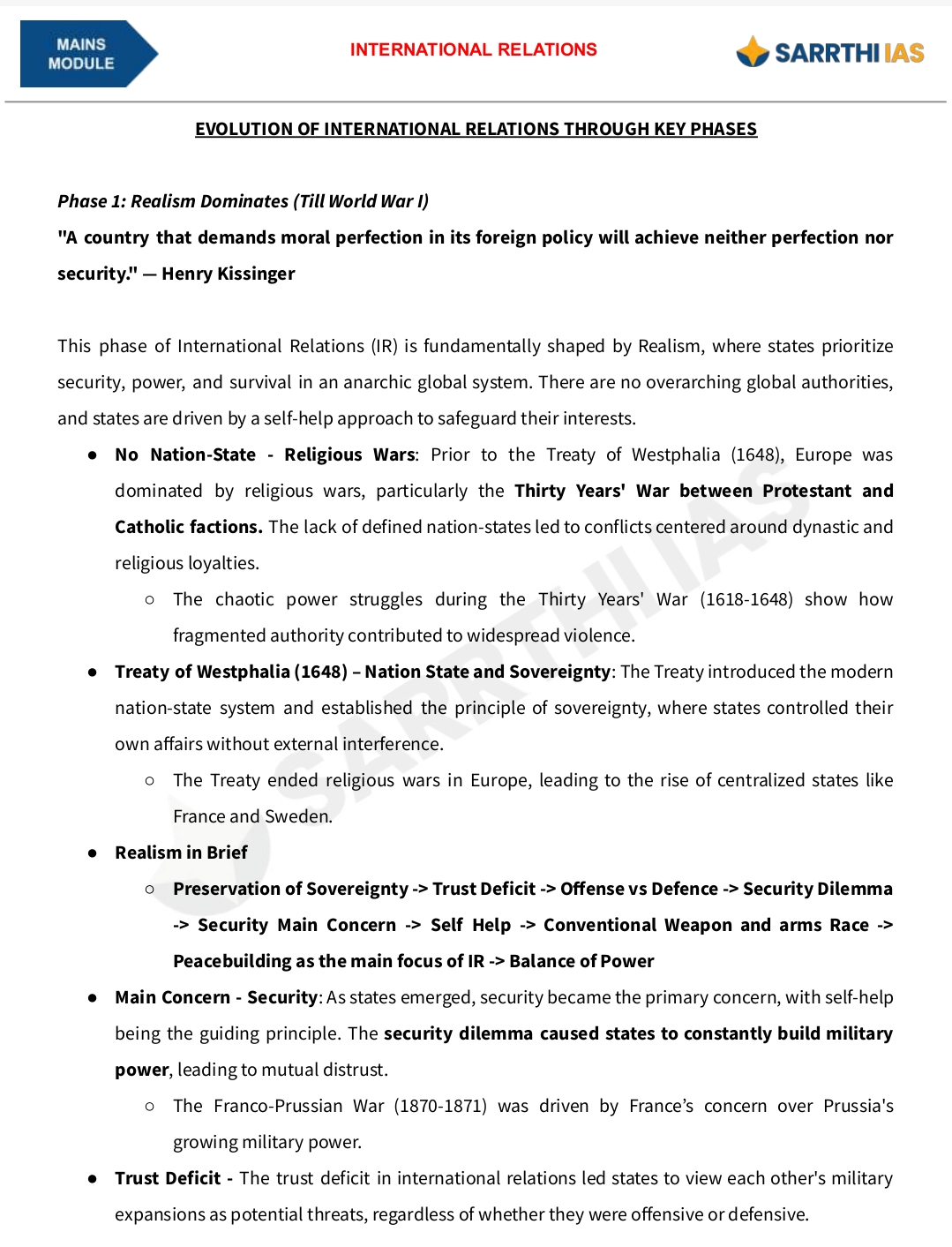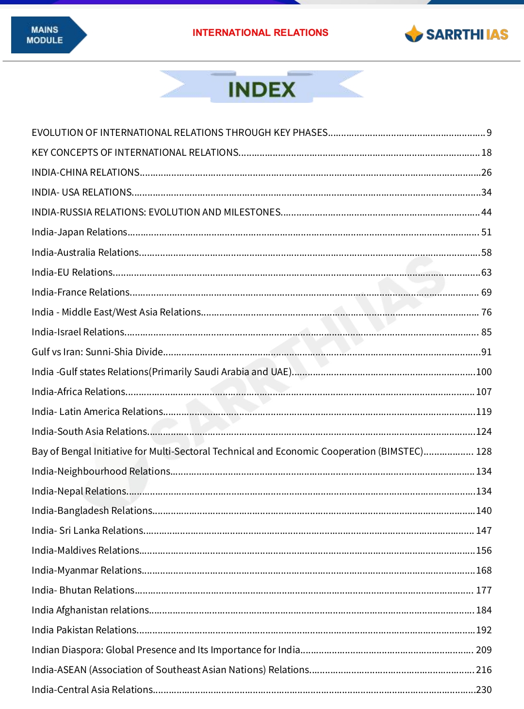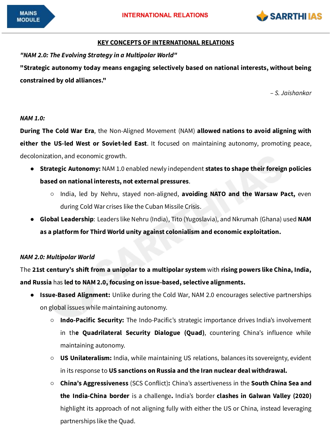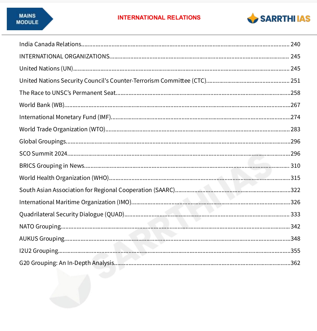 SARRTHI IAS (International Relations) Mains Module – 2025