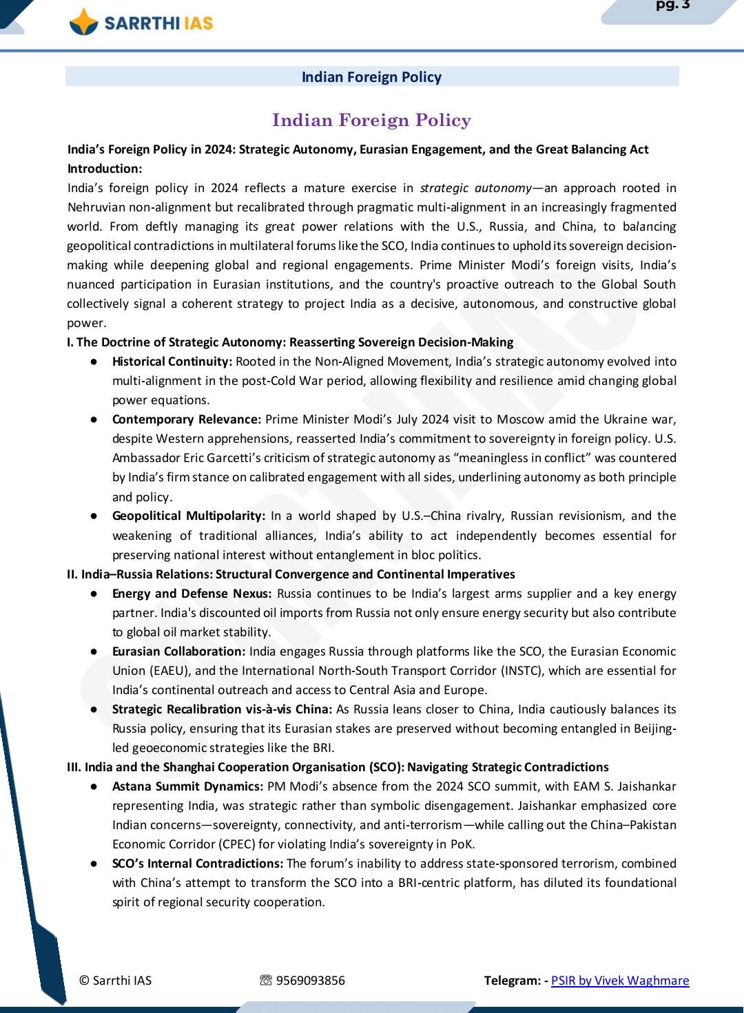 SARRTHI IAS PSIR Bulletin (Complete Current Affairs of IR) Mains- 2025 by Vivek Waghmare