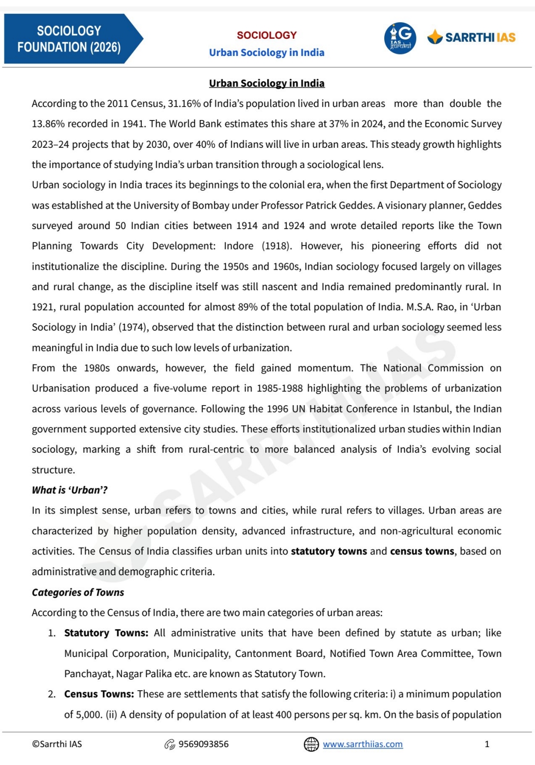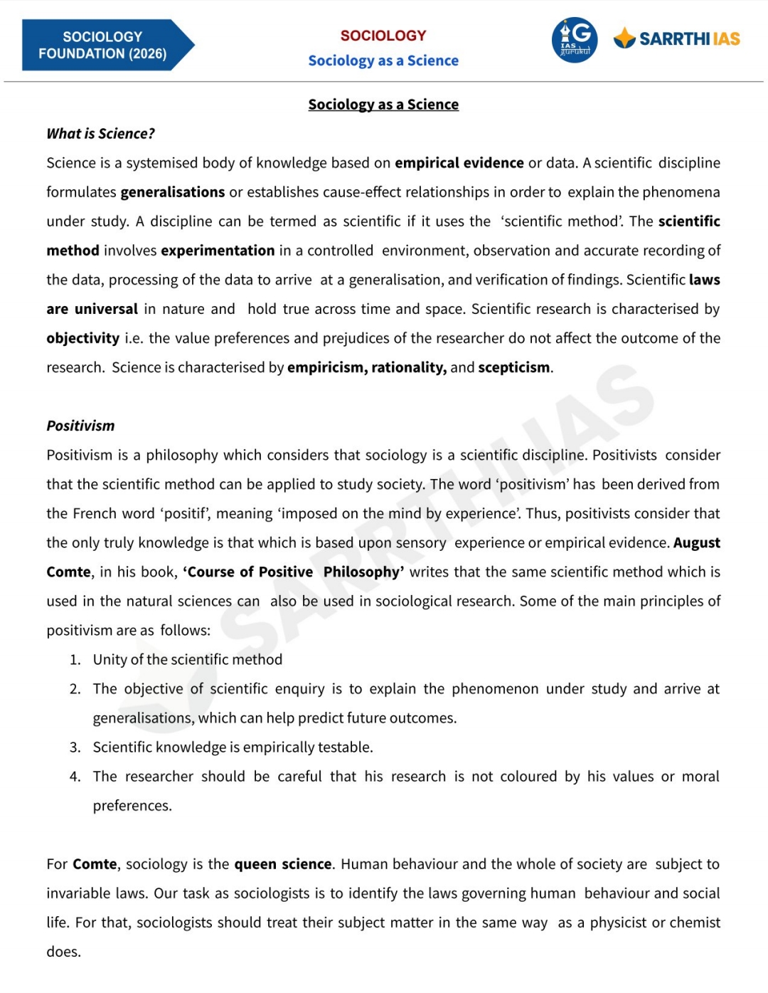 SARRTHI IAS Sociology Optional Foundation Handouts- 2026