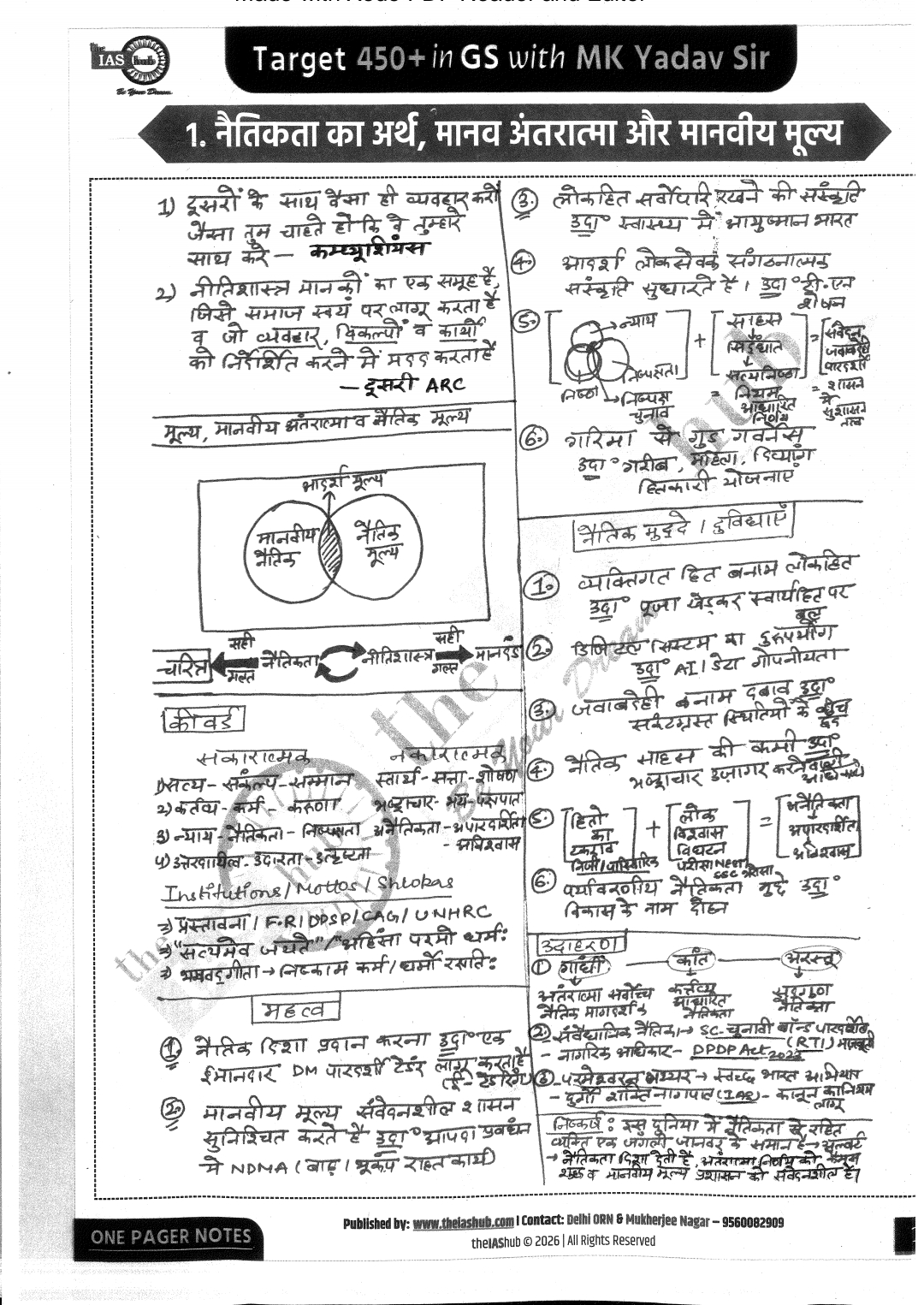TheIAS Hub One Pager Notes(Hindi) Mains Target(GS Paper- IV) 450+Marks by MK Yadav