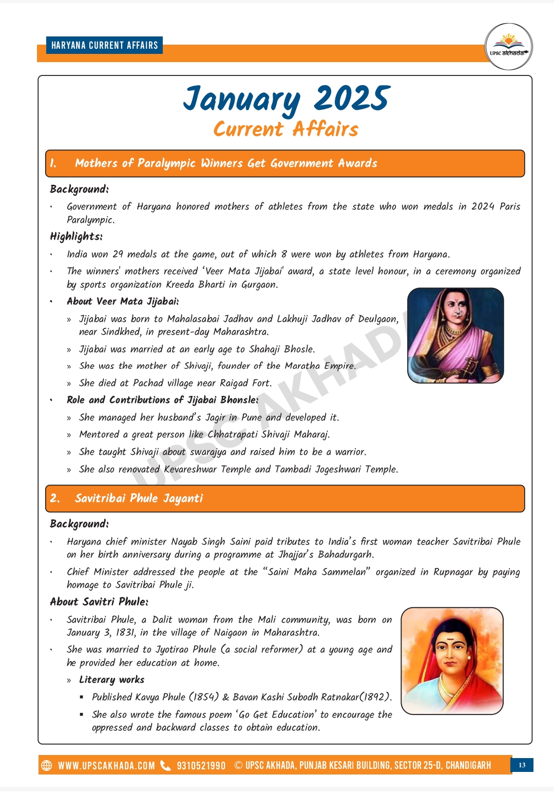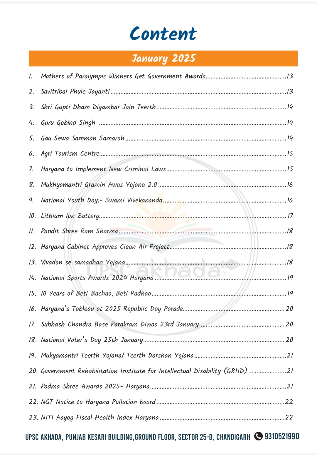 UPSC Akhada HCS(HARYANA Current Affairs) January to September-2025