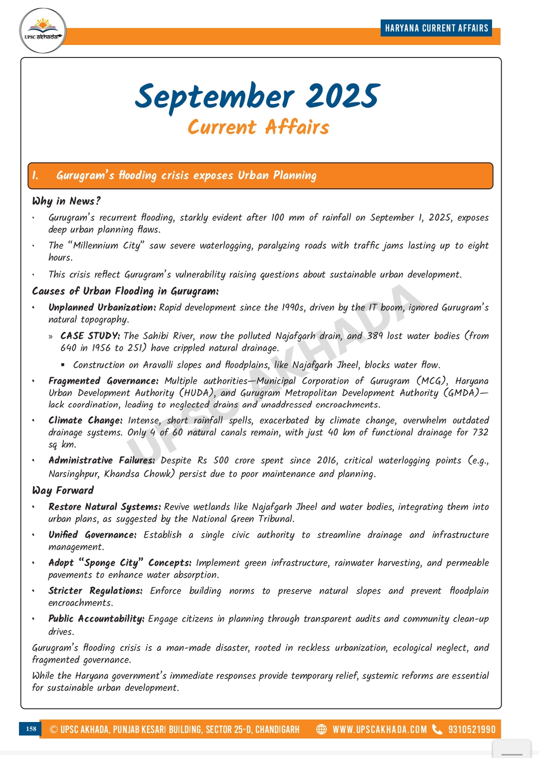 UPSC Akhada HCS(HARYANA Current Affairs) January to September- 2025