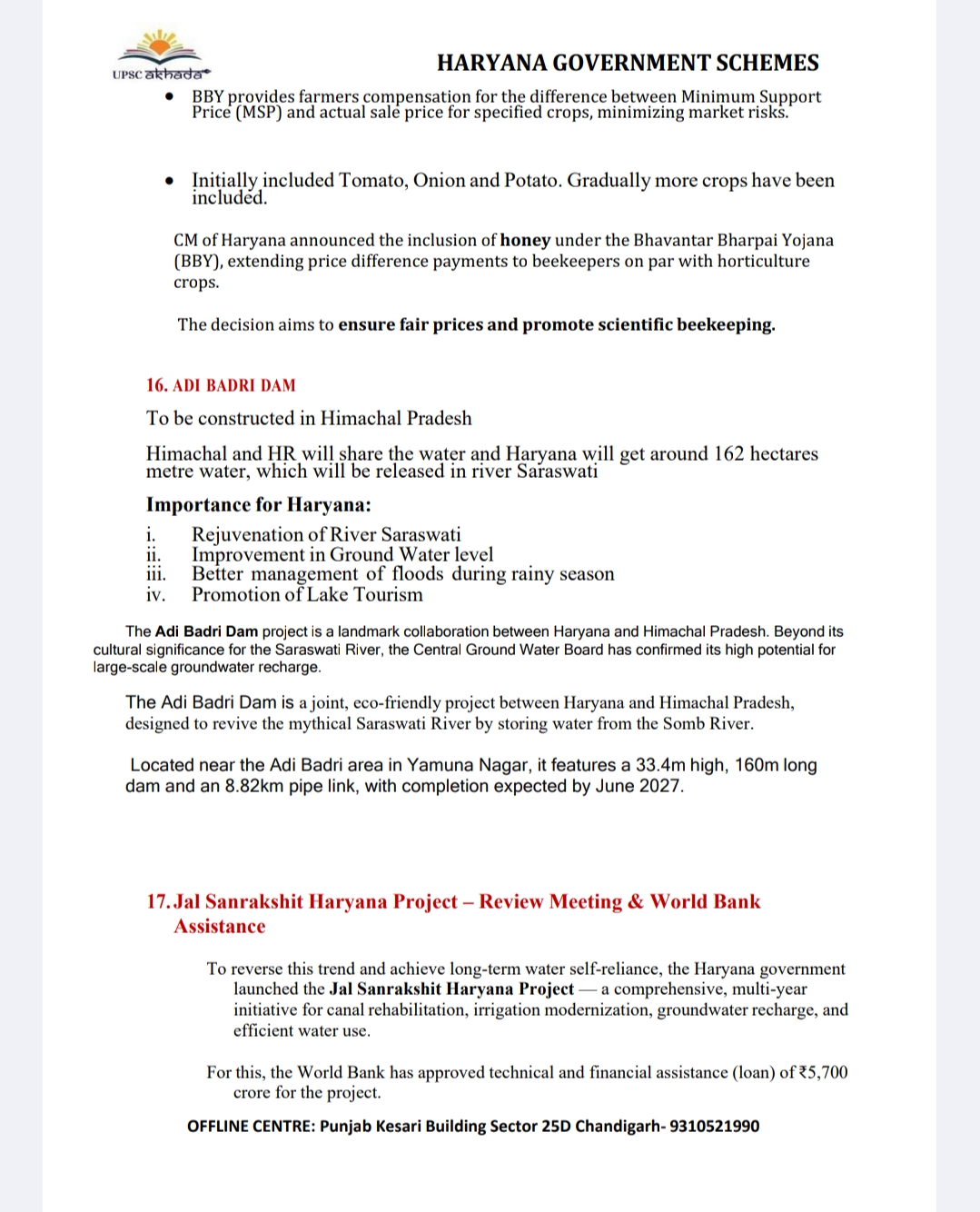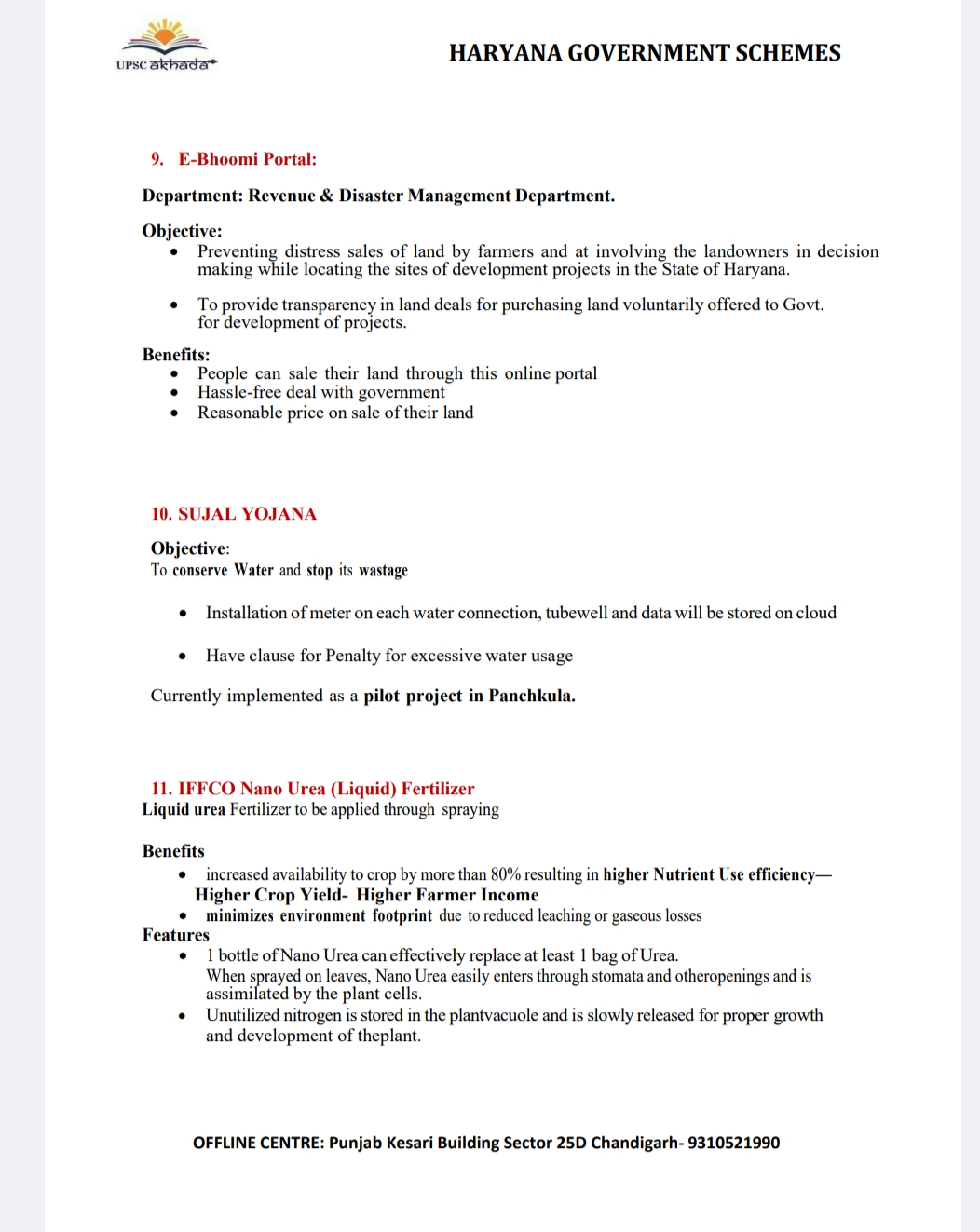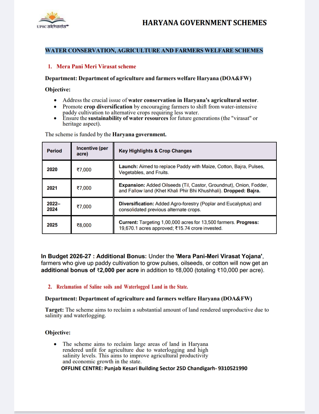 UPSC Akhada HCS(HARYANA Government Schemes)- 2026