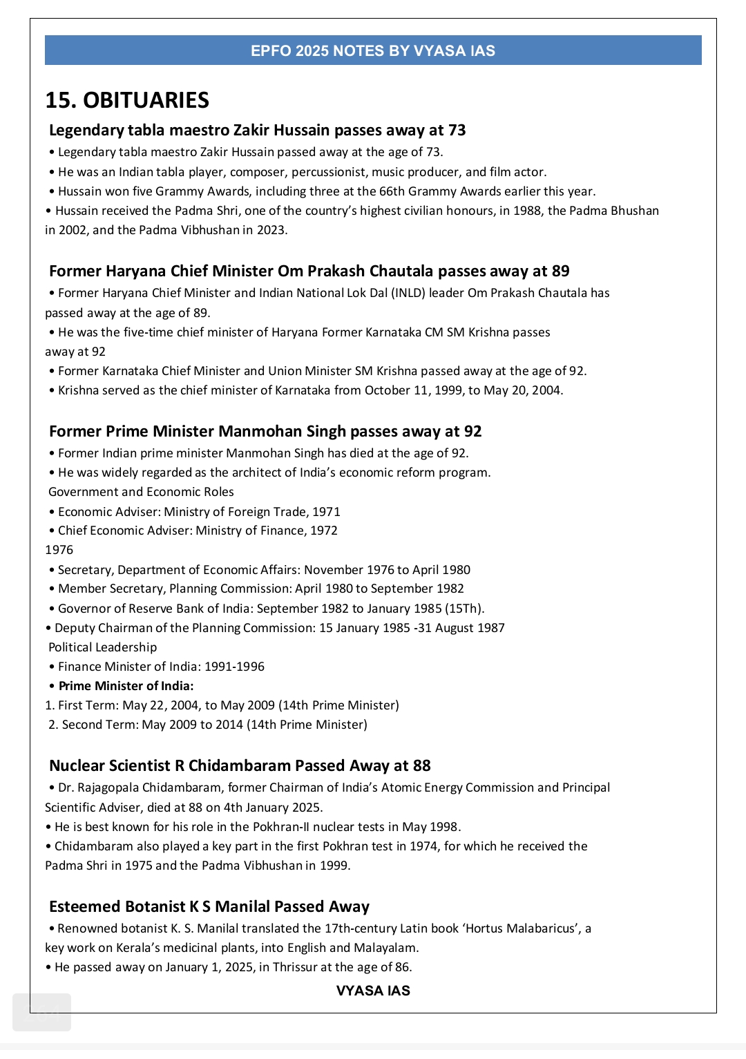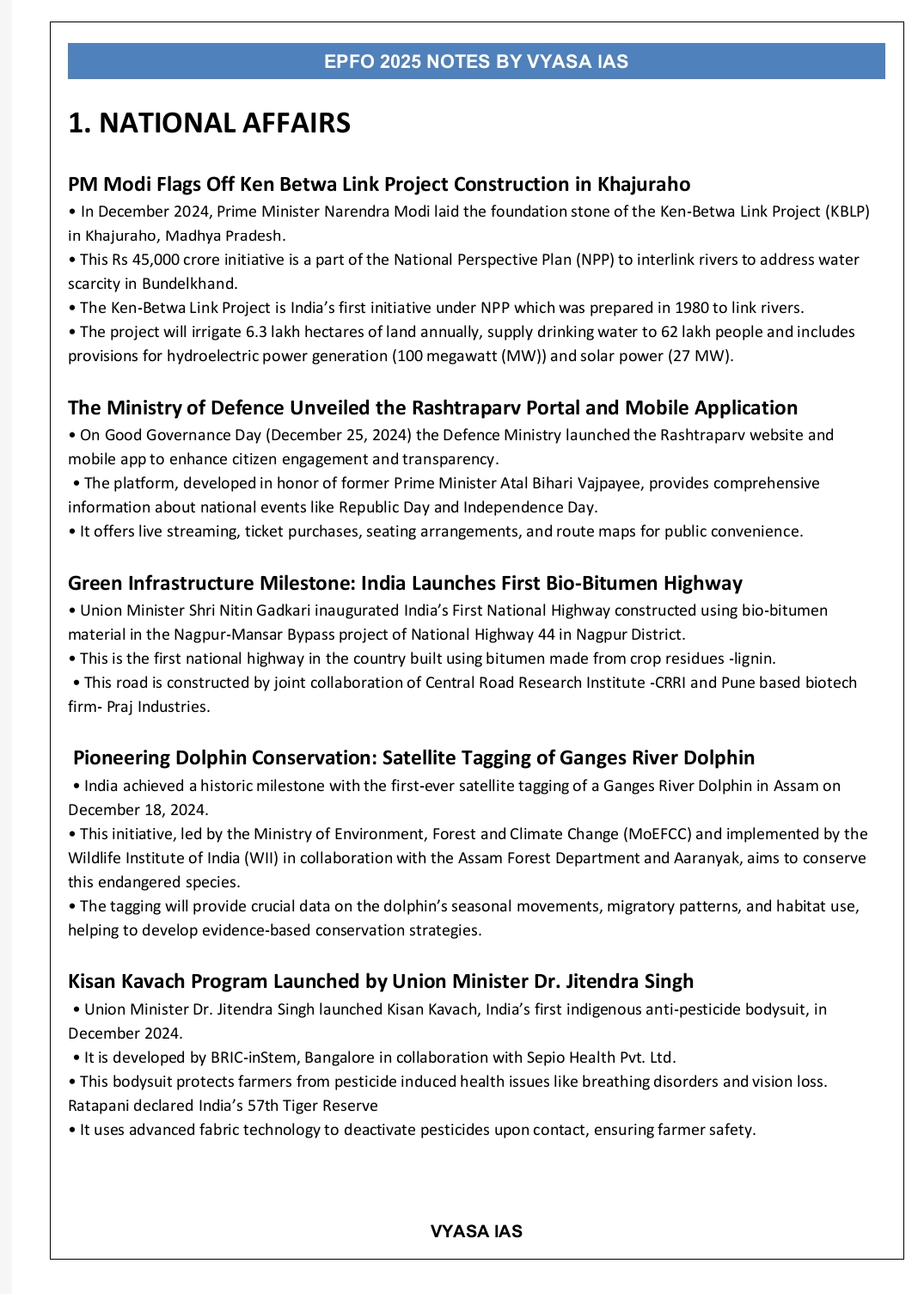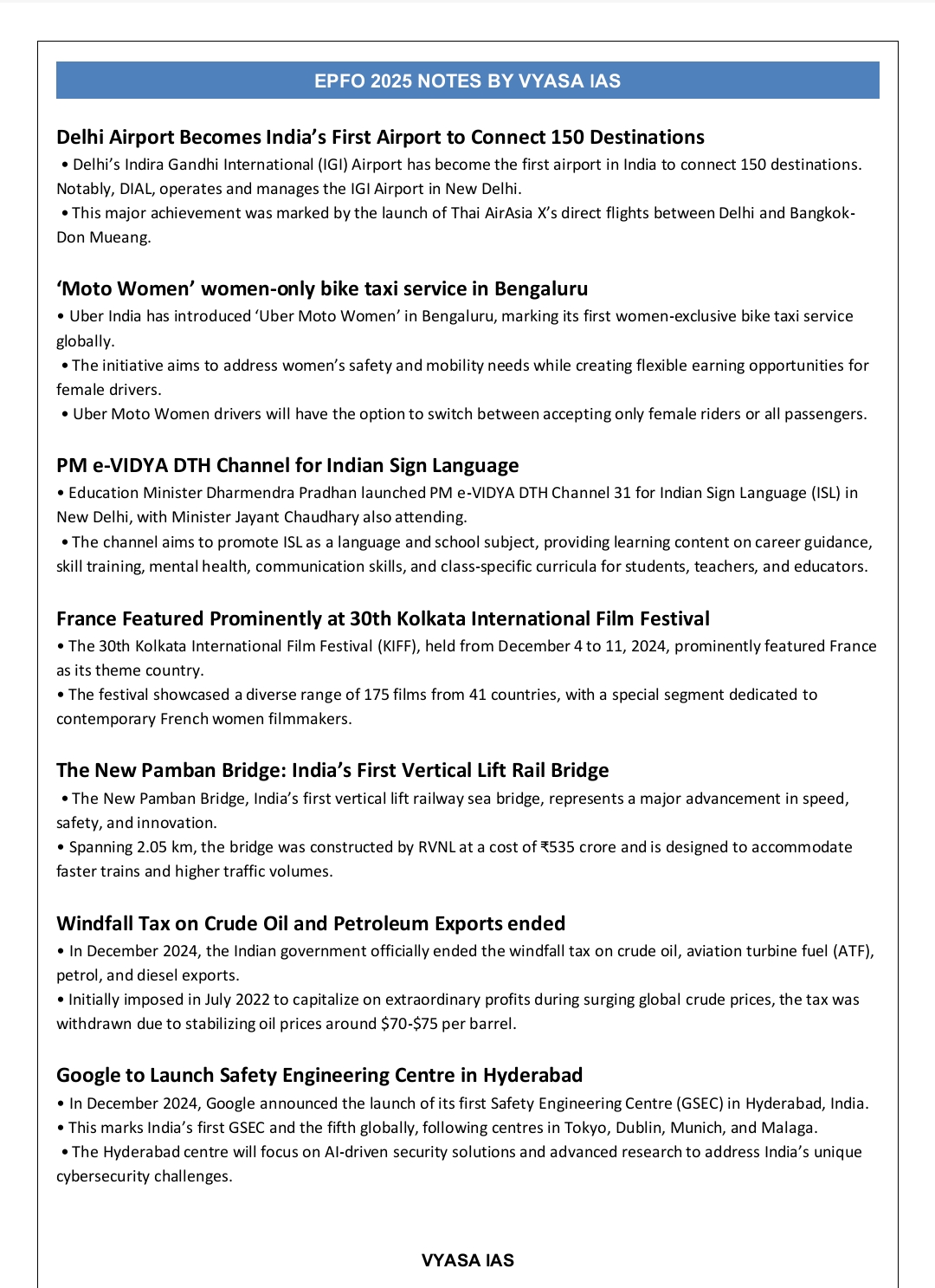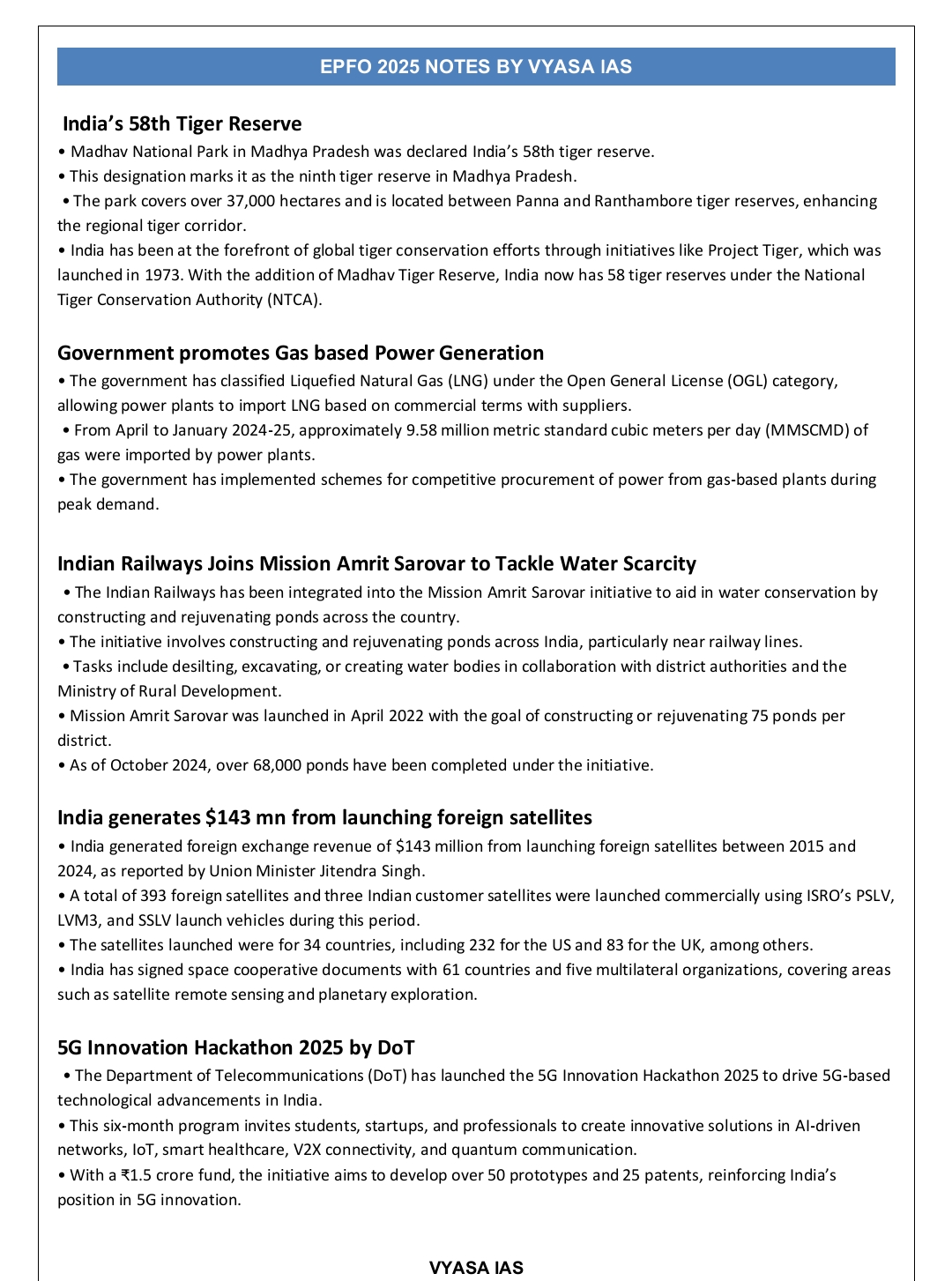 VYASA IAS EPFO(EO/AO & APFC) Current Affairs -2025